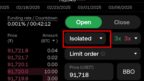 격리마진모드를 사용하면 해당 포지션에 할당한 증거금만 리스크에 노출되고 나 계정의 남은 자산에는 영향을 주지 않습니다.
