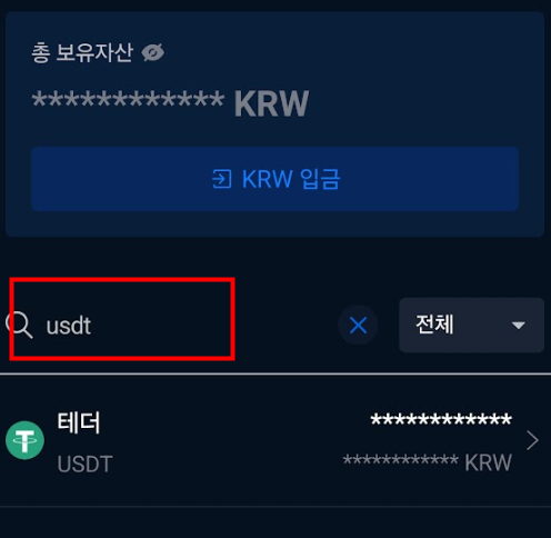 업비트 >입출금 > usdt > 입금 메뉴에서 주소 확인