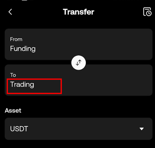 거래를 하려면 이 지갑에서 Trading 지갑으로 한번더 이체를 해줘야 합니다.